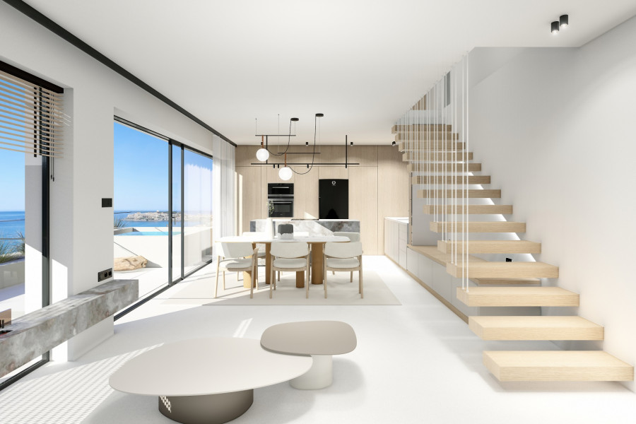 It consists of 2 bedrooms with 1 bathroom on the 2nd floor (44,54 sqm), an open plan living room with kitchen and 1 bathroom on the 1st floor (57,28 sqm). Also on the 1st floor level there is a stylish balcony of 25,10 sqm with a private swimming pool of 2 X 1,90 sqm. The Maisonette will be bright with unique Seaview, luxurious and functional with Smart Home specifications, energy class A + with heating and cooling by heat pump, solar, double glazing, touch switches (tempered glass). Also the Maisonette will have a closed parking space and a storage room in the basement. Construction is expected to start in September and delivery is expected early in 2026.