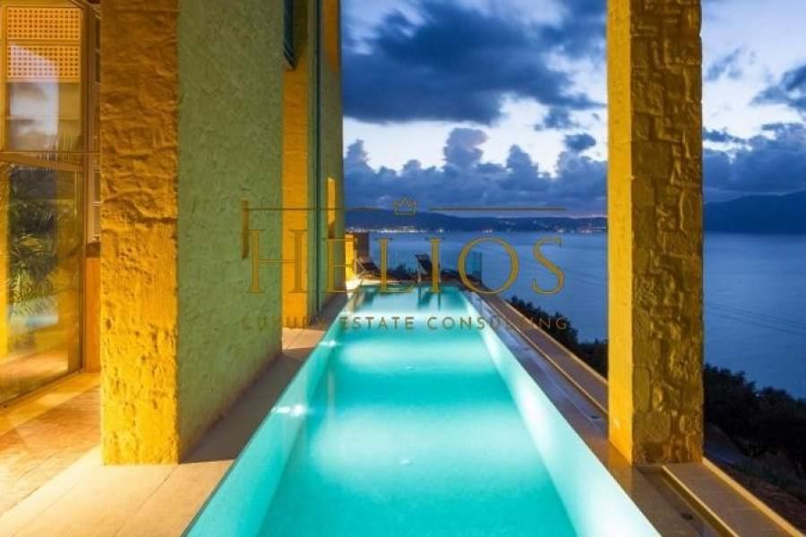 The outdoor area has a 40 square meter infinity pool with sunbeds, barbecue facilities, outdoor dining area and seating areas with panoramic sea views, which will offer you moments of relaxation. Also, the garden plants blend in with the natural environment and create a beautiful atmosphere. Finally, the villa has its own gym and sauna, located in a hall equipped with a treadmill, elliptical machine and bicycle, as well as a wooden sauna room and a shower.