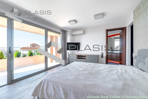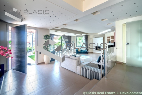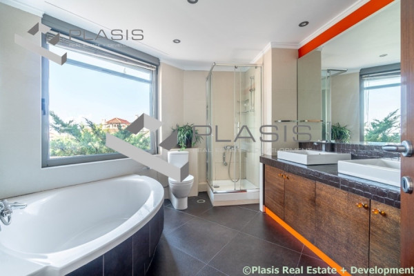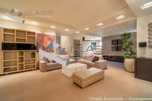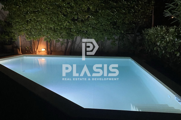 Detached house For rent, floor: Ground floor, in Glyfada - Aigli. The Detached house is 360 sq.m. and it is located on a plot of 400 sq.m.. It consists of: 4 bedrooms (3 Master), 4 bathrooms, 1 wc, 1 kitchens, 1 living rooms and it also has 3 parkings (3 Underground). The property was built in 2008. Its heating is Autonomous with Oil, Underfloor heating, Air conditioning, Solar water system, Boiler are also available, it has Aluminum frames with Double glazed windows, the energy certificate is: C and its floors are Wooden. The property's status is: Excellent condition, it has Sea view. The Detached house is Painted, With Facade, Bright, Airy, Sunny, Airy, Luxury and it also has the following unique features and advantages: Window Screens, Tents, Elevator, Electric Appliances, Storage, Swimming pool, Garden, Security door, CCTV, Security alarm, Playroom, BBQ, Night stream, Grass, Pets allowed, Quiet neighborhood. Price: €4,500. Plasis Real Estate Glyfada, contact phone: 2109601909, email: