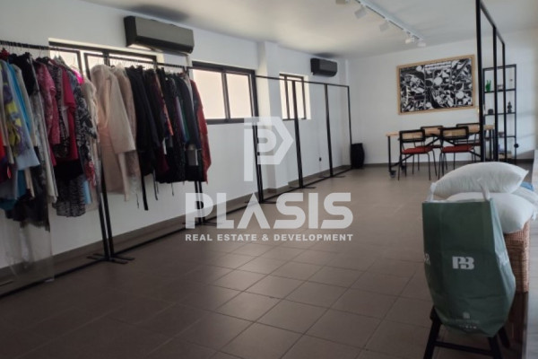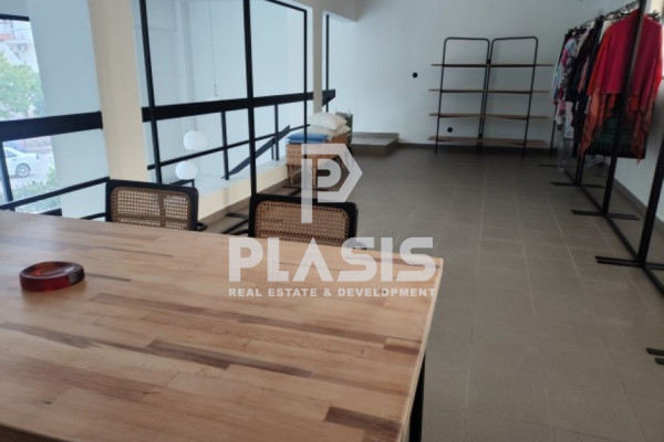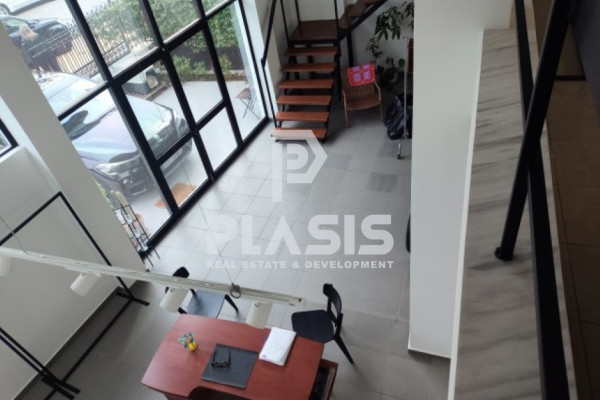 Agioi Anargiroi, Shop For rent, floor: Ground floor. The property is 125 sq.m.. It is close to Transportation, Park, School, Square, Church, Kindergarten, Public market, Super Market, Mall, Cafe/Restaurants, Local market, in Mix use. It consists of 85 sq.m. ground floor, 40 sq.m. loft and it has a 6 m. showcase. The property was built in 2002, renovated in 2024, and it has:, 1 bathrooms and it also has 1 parkings (1 Open). It's heating is Not available with Electricity, Three Phase current, Air conditioning are also available, it has Aluminum frames with Single windows, energy certificate: C and its floors are Tiles. The property's status is: Excellent condition, it has Park view. The Shop is With Facade, Bright, it is suitable for Business offices, Commercial, Suitable for eateries, Security door, CCTV, Security alarm, Security cameras, Business furnishing, No shared expenses, Front yard, Internal yard. Price: €1,300. Plasis Real Estate Syntagma, contact phone: 2103224225, email: