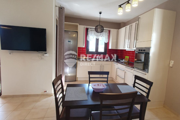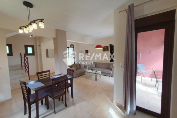 The maisonette consists of 2 levels. The first level of the maisonette is on the ground floor and consists of an open living room with kitchen and dining room and terrace as well as the internal staircase. From the living room there is access to the outdoor garden area, approximately 10 sq.m., where the floor has been covered with slabs.