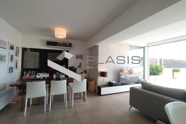 Apartment For sale in Saronida. The Apartment is 96 sq.m. and it is located on a plot of 250 sq.m.. It consists of: 2 bedrooms (1 Master), 1 bathrooms, 1 wc, 1 kitchens, 1 living rooms and it also has 1 parkings (1 Open). The property was built in 2007 and it was renovated in 2017. Its heating is Autonomous with Oil, Air conditioning, Boiler, Radiator are also available, it has Aluminum, Thermal brake frames with Triple glazed windows, the energy certificate is: B and its floors are Tiles, Wooden. The property's status is: Excellent condition, it is close to Transportation, Sea, School, 500 Meters from city, 1000 Meters from seaside, 20000 Meters from airport, it has Sea, Openness view and it has Meridian orientation. The Apartment is Painted, Furnished, With Facade, Bright, Airy, Ramp / Wheelchair access, Luxury and it also has the following unique features and advantages: Window Screens, Tents, Elevator, Electric Appliances, Storage, Swimming pool, Garden, Security door, CCTV, Security alarm, Internet, BBQ, Sattelite Receiver, Night stream, Three phase current, Automatic watering, Trees, Pets allowed, Quiet neighborhood, Porch, Electric shutters, Septic tank. Price: €800,000. Plasis Real Estate Glyfada, contact phone: 2109601909, email: