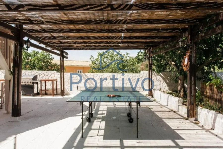 Property Code: 1-5 - Villa FOR SALE in Corfu Achilleio for € 1.850.000 . This 480 sq. m. furnished Villa consists of 3 levels and features 5 Bedrooms, 3 Livingrooms, 3 Kitchens, 5 bathrooms . The property also boasts tiled floor, view of the Sea, Window frames: Aluminium, Armourplated door, parking, a storage unit sqm, garden, fireplace, swimming pool, A/C, pre-installation for A/C, heating per level, electrical appliances, awnings, insect screens, double-glazed windows, solar-powered water heater, entry stairs, BBQ, satellite dish, off-peak electricity rates during night hours, internal staircase. The building was constructed in 1993 Plot area: 2000 s.q. . Building Energy Rating: A Distance from sea 50 meters,