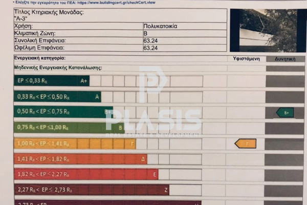 Apartment For Sale, floor: Raised Ground Floor, in the area: Nea Smyrni. The area of the property is 63 sq.m. It consists of: 1 bedroom, 1 bathroom, while it has 1 parking spaces (1 in the pilothouse). It was built in 2005. The heating of the property is Autonomous with Oil, while Air Conditioning, Solar is also available, it has Aluminum frames with Double glazing, energy certificate: C and the floors are: Wood, Marble. Its condition is: Very good, it is close to Transportation, School, Square, Entertainment Centers, Market, it has a good view and it has a West orientation. The property is Bright, Airy, Sunny, Luxurious, suitable for Investment, Income and also has the following features and advantages: Awnings, Storage, Security Door, Night Power, Pets Allowed, Quiet Neighborhood, Veranda, Electric Shutters. Price: €210,000. Plasis Real Estate Glyfada, Contact Phone: 2109601909, email: