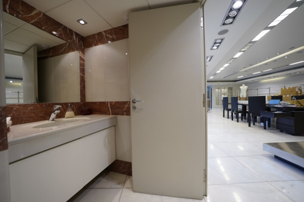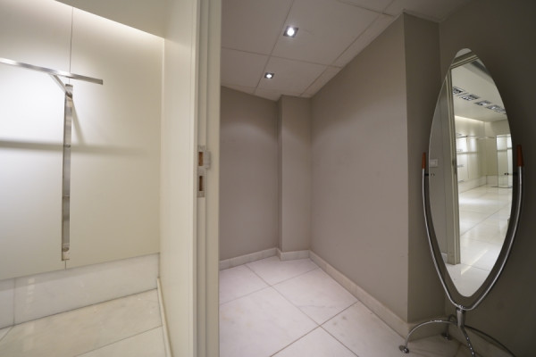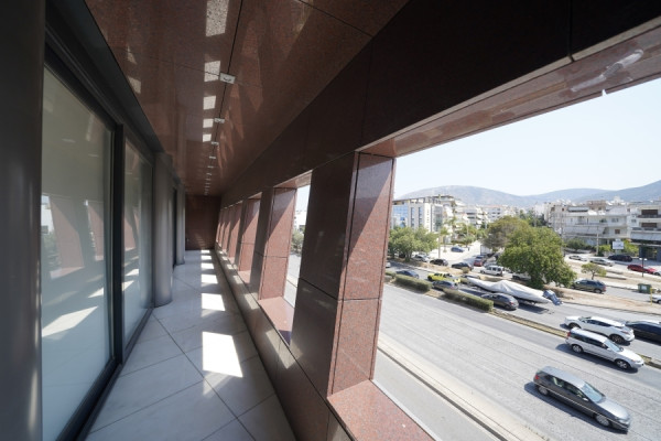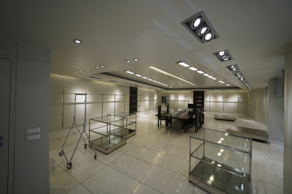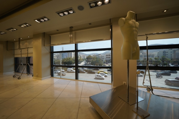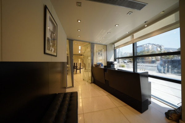 In Glyfada, in a central and highly visible location, a building with a total area of 930 sq.m., built in 2001, is available for rent. It is arranged over 7 levels with a ground floor and four WCs. The property features marble floors, aluminum window frames, and six parking spaces.