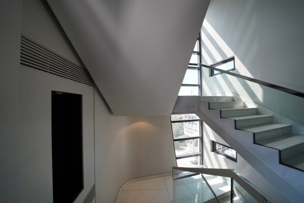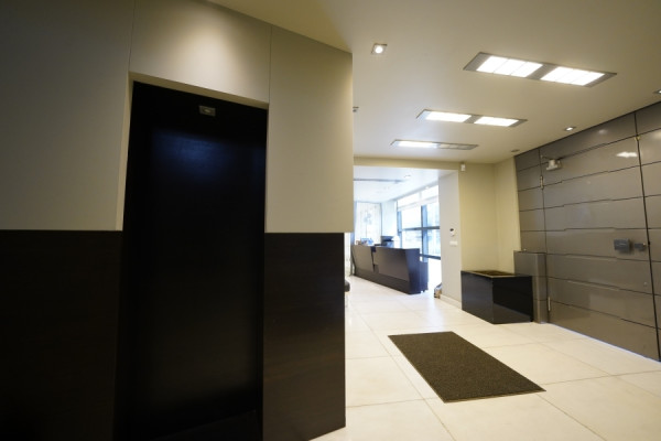 It includes an elevator, storage room, suspended ceiling, structured cabling, internal staircase, and is dual aspect, front-facing, and exceptionally bright, with air conditioning and direct access to public transportation and shopping areas.