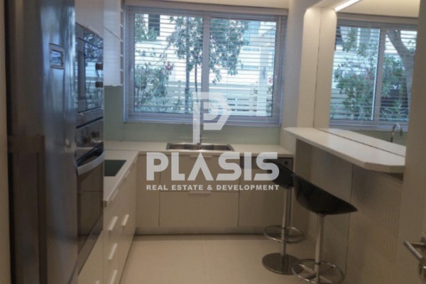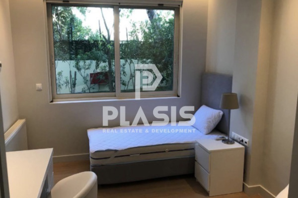 Apartment For rent, floor: Ground floor, in Glyfada - Golf. The Apartment is 140 sq.m.. It consists of: 2 bedrooms (2 Master), 2 bathrooms, 1 wc, 1 kitchens, 1 living rooms and it also has 1 parkings (1 Underground). The property was built in 2004 and it was renovated in 2022. Its heating is Autonomous with Natural gas, Air conditioning, Solar water system are also available, it has Aluminum frames with Double glazed windows, the energy certificate is: C and its floors are Wooden. The property's status is: Renovated, Freshly painted, Very good condition, it is close to Transportation, Park, Sea, Seaside, Local market, it has Nature, Openness view. The Apartment is Painted, Bright, Airy, Sunny, Luxury, Mansion and it also has the following unique features and advantages: Window Screens, Elevator, Electric Appliances, Storage, Garden, Security door, CCTV, Security alarm, Security cameras, Night stream, Automatic watering, Grass, Trees, Pets allowed, Quiet neighborhood, Porch. Price: €3,600. Plasis Real Estate Glyfada, contact phone: 2109601909, email: