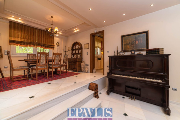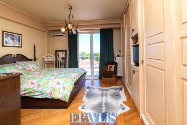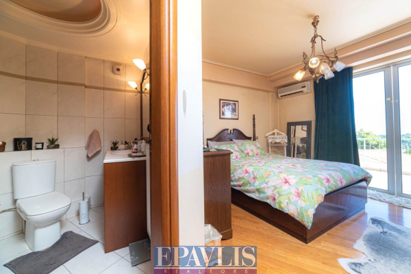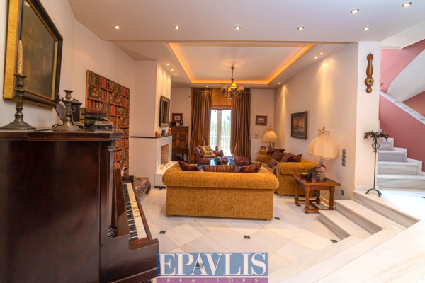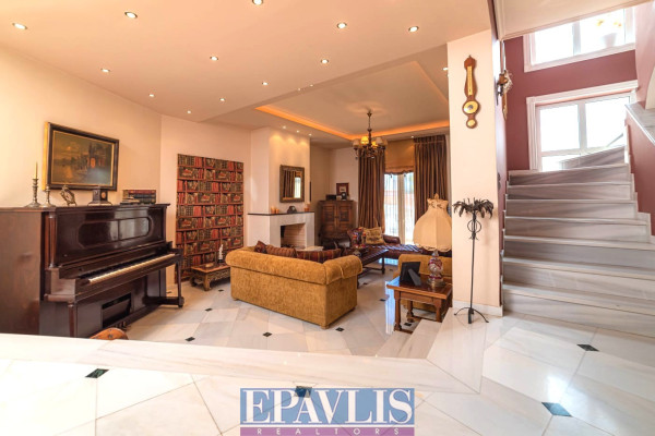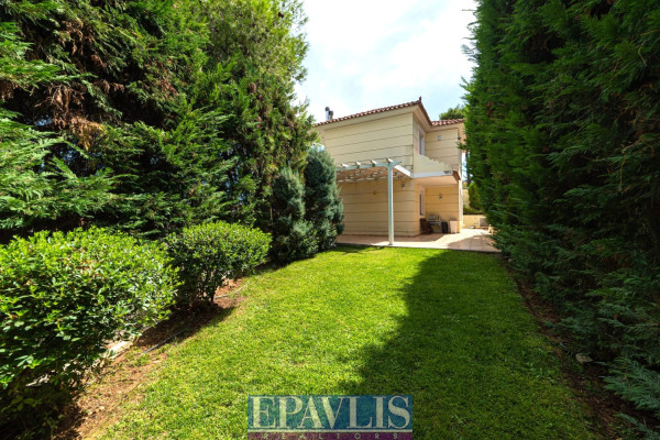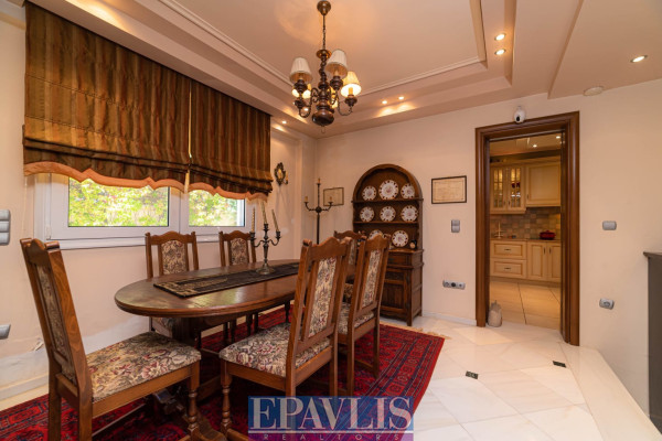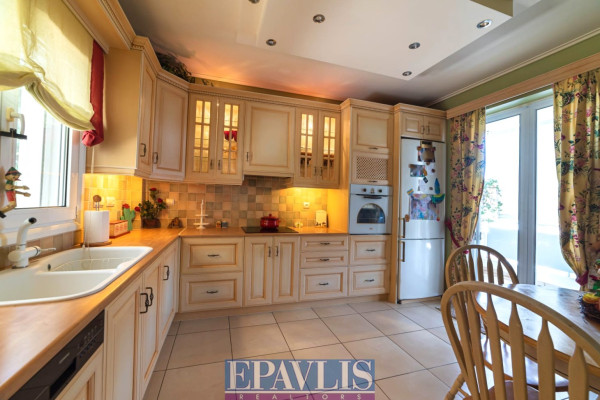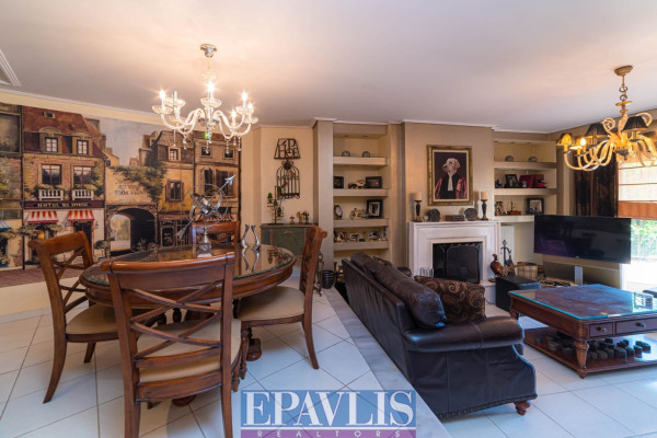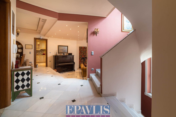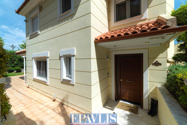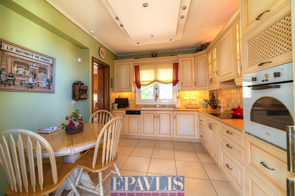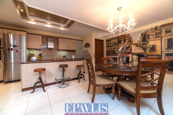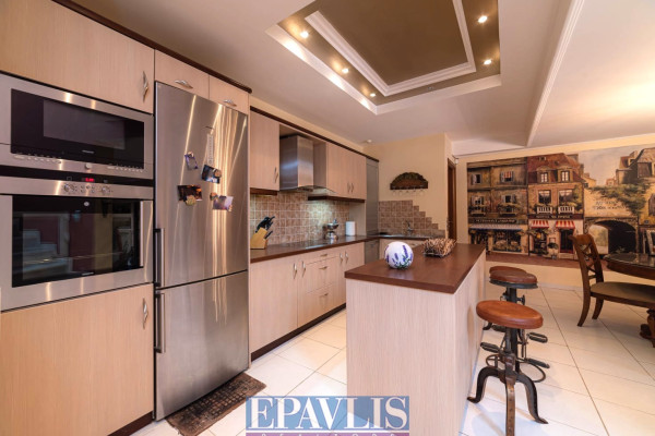 Luxurious 275 sq.m. maisonette in the Stamata – Efxinos Pontos area, built in 2007 on a 440 sq.m. plot. It is an independent residence, excellently maintained, built on three levels. Specifically, the ground floor features large reception areas, a living room with a fireplace, a dining area, a kitchen, a WC, and large verandas. An internal marble staircase connects all levels. The first floor includes three large bedrooms, one of which is a master, two bathrooms, large wardrobes, and verandas. There is also a semi-basement apartment, which can function independently, featuring a living room with a fireplace, an open-plan kitchen, a bedroom, a bathroom, closed parking, and a storage room. Heating is autonomous with oil per level. The property also has air conditioning, a boiler, aluminum frames with double glazing, Energy Certificate: Class B, and wood and marble floors. Its condition is excellent. It is located close to supermarkets, shops, restaurants, and offers open, panoramic, unobstructed views with an east-south orientation. The property is corner, frontage, bright, airy, sunny, dual-aspect, free on all sides, luxurious, stately, neoclassical, ideal for a family or as an investment. It also features the following characteristics and advantages: insect screens, awnings, electrical appliances, storage room, internal staircase, landscaped garden with lawn and trees, security door, video intercom, alarm system, internal elevator, internet, playroom, no shared expenses, automatic watering system, pets allowed, quiet neighborhood, veranda, electric shutters, maid’s room, septic tank. Price: €480,000. EPAVLIS REALTORS contact phone: 2109945719, email: