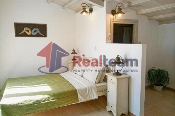 The residence faces south and boasts large terraces with stunning views of the island's blue-green waters. It is surrounded by a green garden, perfect for families and pets, providing unique moments of relaxation and enjoyment in beautiful Alonissos. Access by car is via a paved road. The location is convenient, near the Old Town of Alonissos, with shops, restaurants, and mini-markets nearby. Gialia beach is just 1.5 km away, the port in Patitiri is 1.4 km away, and Skiathos airport is 50 km away. It can also serve effectively as a hotel or a business for short-term and long-term room rentals.