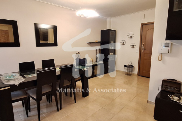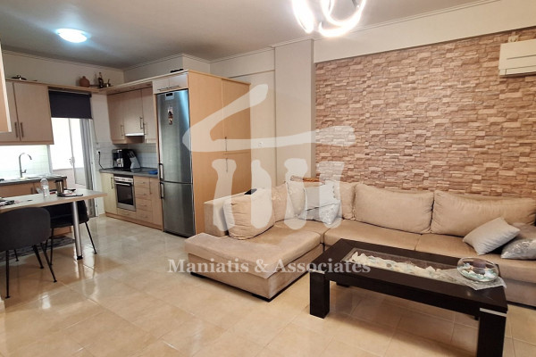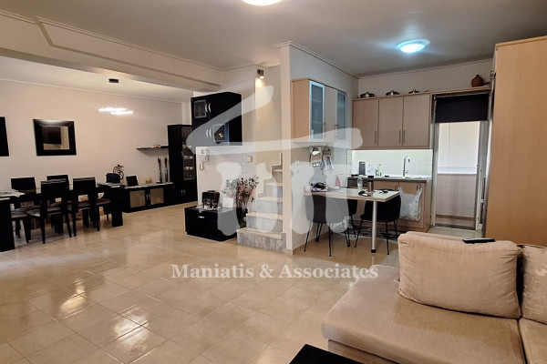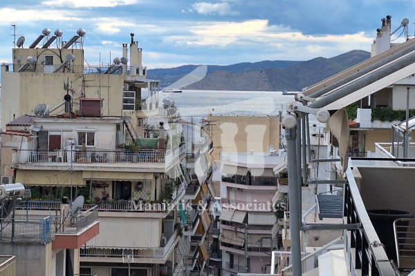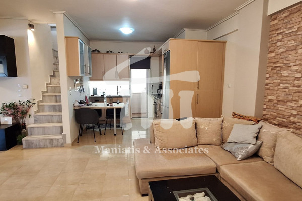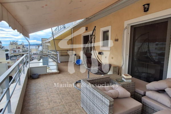 For Rent, Piraeus - Kallipoli: Maisonette with a total area of 106 sq.m., 5th & 6th floor, distributed as follows: on the first floor there is a single living room with a kitchen fully equipped with built-in electrical appliances, a living room dining room and a WC. The second level houses two bedrooms and the master bathroom. It is equipped with autonomous oil heating per level, dual-energy solar water heater and air conditioners in all areas. It has aluminum frames with double glazing and screens. The property has a large parking space in the pilothouse which could fit a second small car in a front-to-back arrangement and in addition a small storage room in the basement. The maisonette was built in 2004 and is presented in excellent condition. Intercom and security door are provided offering a high level of security and functionality. It has very large verandas on both levels and are covered by awnings throughout. The property is characterized by a bright, airy and bright space, with a wonderful view diagonally towards the sea and an open horizon. It is located in a quiet neighborhood, with access to public transport, schools, kindergartens, a market and a super market. Price: €1050. Maniatis & Associates, Contact Phone: 2104190703, email: