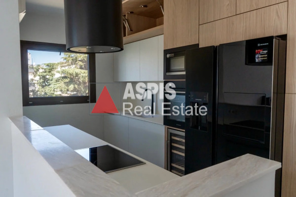 Luxury penthouse maisonette of 160 sqm, 4th-5th floor for sale. It consists of 3 bedrooms and 3 bathrooms on the 4th floor, as well as a living room, kitchen, another bathroom, a barbecue and a jacuzzi on the 5th floor. It has heating with a heat pump, underfloor heating ensuring high energy efficiency and is delivered fully equipped with branded electrical appliances (fridge-washing machine-dryer-alarm and security cameras. Finally, there is also a parking space. It has a wonderful view of the sea.