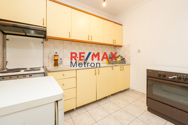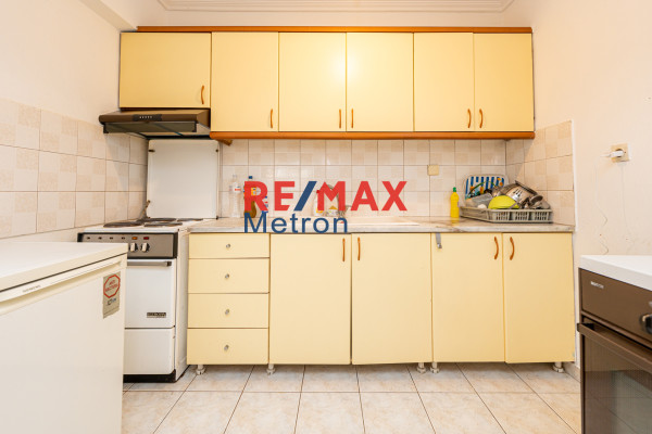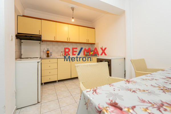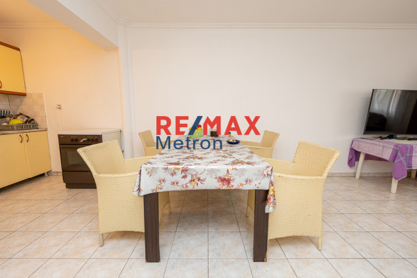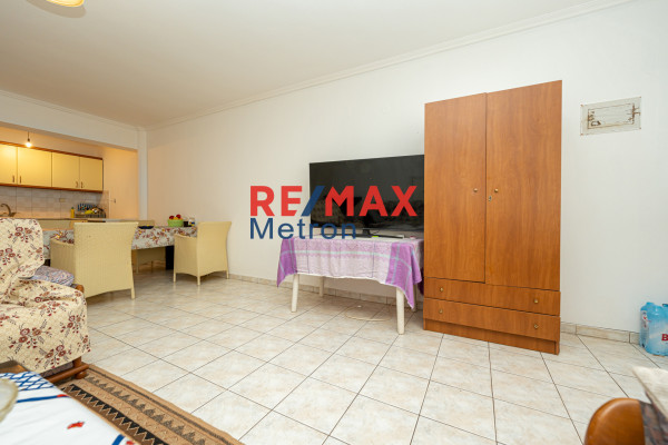 Semi-basement apartment of 56.46 sq.m. in Nea Moudania, Halkidiki. It consists of an open-plan living room, a bedroom and a bathroom. Entering the apartment we find an open-plan living room and kitchen.