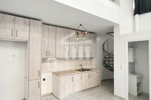 Loft for Rent, Ground Floor, Area: Kastella - Pasalimani. The property has a total surface of 82 sq.m. It consists of 1 bedroom, 1 bathroom, 1 WC, 1 kitchen, and 1 living room. It was built in 1993 and fully renovated in 2025. The ground floor is particularly bright, corner-positioned, and street-facing. It includes an open-plan living room with kitchen and a WC. A spiral internal staircase connects to the upper level, where the bedroom and main bathroom are located. Heating is autonomous with natural gas, and radiators are installed. The property features aluminum frames with double glazing, energy certificate category C, and tiled flooring. Its overall condition is very good—fully renovated and freshly painted. It is located in a quiet neighborhood, very close to tram and public transport stops, the sea, schools, church, farmers' market, supermarket, university, and dining options. Ideal for students or young professionals. Additional features: double-glazed windows, insect screens, spiral staircase, security door, bright spaces, corner orientation. Monthly rent: €550. Maniatis & Partners, Contact number: +30 2104190703, Email: