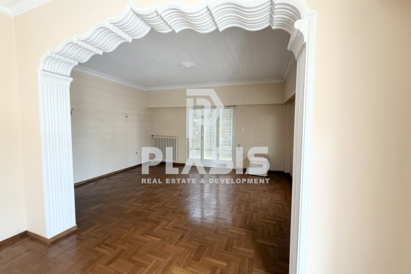 Apartment For sale, floor: Elevated Ground Floor, in Marousi - Center. The Apartment is 172 sq.m.. It consists of: 3 bedrooms, 1 bathrooms, 1 wc, 1 kitchens, 1 living rooms. The property was built in 1972. Its heating is Central with Oil, Boiler, Radiator are also available, it has Aluminum, Wooden frames with Single windows, the energy certificate is: E and its floors are Wooden, Marble, Mosaic. The property's status is: Needs renovation, it is close to Transportation, Park, School, Square, Super Market, Mall, City Center, Cafe/Restaurants, Local market, 800 Meters from metro, it has Good, City views view. The Apartment is Whole floor, On Corner, With Facade, Bright, Airy, Sunny, Airy, Detached, it is suitable for Investment, Storage, Trees, Pets allowed, Porch, Drains. Price: €320,000. Plasis Real Estate Syntagma, contact phone: 2103224225, email: