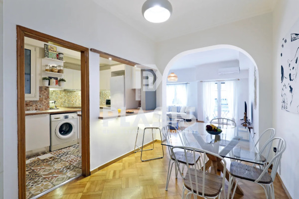 Apartment For rent, floor: 4th, in Kolonaki - Lykavittos. The Apartment is 90 sq.m.. It consists of: 2 bedrooms, 1 bathrooms, 1 wc, 1 kitchens, 1 living rooms. The property was built in 1965 and it was renovated in 2023. Its heating is Not available, Air conditioning are also available, it has Aluminum frames with Double glazed windows, the energy certificate is: B and its floors are Tiles, Wooden. The property's status is: Renovated, Excellent condition, it is close to Transportation, Super Market, Entertainment centers, University, Cafe/Restaurants, Local market, it has Good, City views view and it has SouthWest orientation. The Apartment is Painted, Furnished, With Facade, Bright, Airy, Sunny, Airy, Luxury and it also has the following unique features and advantages: Elevator, Electric Appliances, Security door. Price: €2,200. Plasis Real Estate Syntagma, contact phone: 2103224225, email: