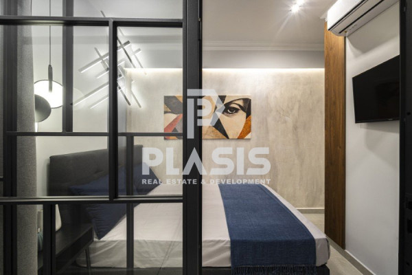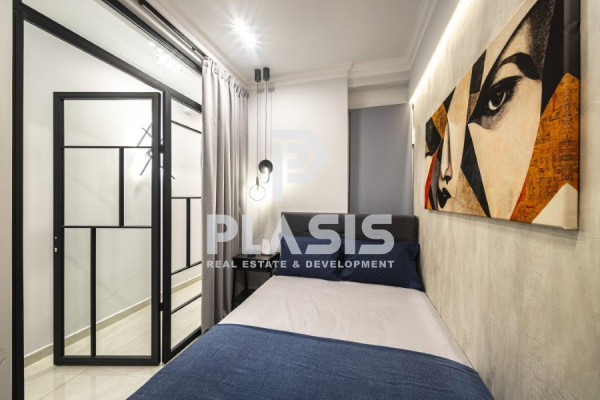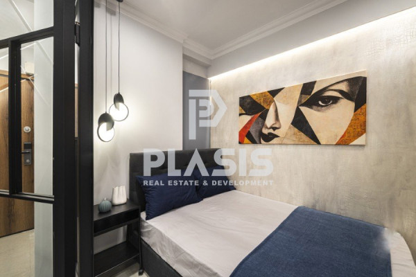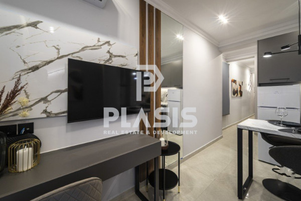 Studio For sale, floor: 6th, in Center of Thessaloniki. The Studio is 38 sq.m.. It consists of: 1 bedrooms, 1 bathrooms, 1 kitchens, 1 living rooms. The property was built in 1959. Its heating is Personal with Natural gas, Air conditioning are also available, it has Synthetic frames with Double glazed windows, the energy certificate is: A and its floors are Tiles. The property's status is: Renovated, Freshly painted, Excellent condition, it is close to Metro, Transportation, Seaside, Square, Super Market, Cafe/Restaurants, Local market, it has City views view. The Studio is Furnished, Without Facade, Bright, Luxury, it is suitable for University Students, Investment and it also has the following unique features and advantages: Tents, Elevator, Electric Appliances, Security door, Porch, Drains. Price: €168,000. Plasis Real Estate Glyfada, contact phone: 2109601909, email: