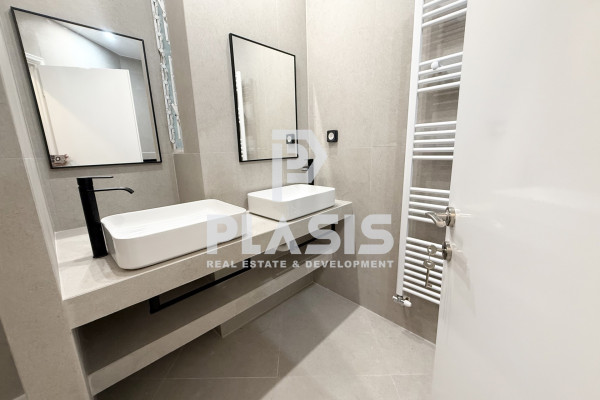 Apartment For rent, floor: 2nd, in Marousi. The Apartment is 124 sq.m.. It consists of: 3 bedrooms, 1 bathrooms, 1 wc, 1 kitchens, 1 living rooms and it also has 1 parkings (1 Open). The property was built in 1990. Its heating is Personal with Natural gas, Air conditioning, Boiler, Radiator are also available, it has Aluminum frames with Double glazed windows, the energy certificate is: C and its floors are Tiles. The property's status is: Renovated, Freshly painted, Excellent condition, it is close to Transportation, Park, School, Square, Super Market, Cafe/Restaurants, Local market, it has Nature, Openness, Good view and it has NorthEast orientation. The Apartment is Painted, On Corner, With Facade, Bright, Airy, Sunny, Airy and it also has the following unique features and advantages: Tents, Elevator, Security door, CCTV, Night stream, Three phase current, Quiet neighborhood, Energy autonomous, Fiber line, Porch, Drains. Price: €1,600. Plasis Real Estate Syntagma, contact phone: 2103224225, email: