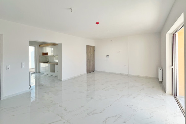 Η είσοδος οδηγεί σε ένα ευρύχωρο, φωτεινό σαλόνι που ανοίγει προς το μεγάλο δυτικό μπαλκόνι — ιδανικό για οικογενειακές στιγμές, ήρεμα πρωινά με καφέ ή για ένα ποτήρι κρασί καθώς ο ήλιος χάνεται στη θάλασσα.