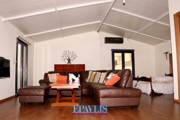Amazing detached house, on a plot of 416sqm, built in 2011. It has a basement with a total area of 128 where there is a parking space for 4 spaces, a warehouse, a boiler room and an engine room for the pool. On the ground floor (112 sq.m.) we find the kitchen, a spacious living room with a fireplace, a bedroom and a bathroom. On the first floor (93 sq.m.) there are 2 bedrooms (1 master), an office space and a bathroom. The last level on the second floor (93 sq. m.) is a single living room with a fireplace - a bedroom with an additional bathroom, while there are sockets - facilities for a kitchen. It is a completely independent property, built for private use with very high quality materials. The architectural distribution of the spaces has been done in such a way that it is possible to divide it into four completely independent levels (there is a remaining construction area of at least 70 sq.m.).