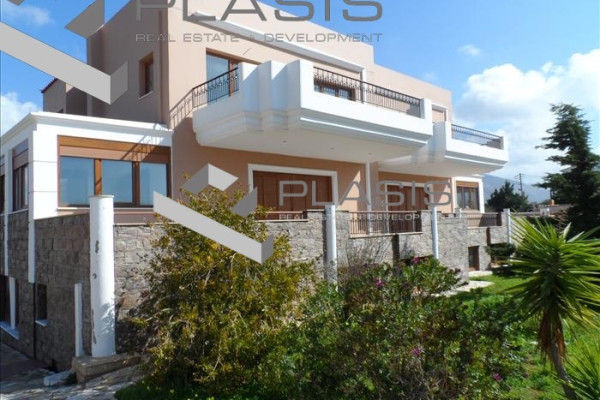 The building, totaling 580 sq.m., is divided into three separate residences: a ground-floor apartment and two identical maisonettes above it with sea views, side by side. The ground-floor apartment includes a living-dining area, an equipped open kitchen, 3 bedrooms, and 3 bathrooms, with a fireplace and access to a large heated outdoor pool. Access is easy from the open parking area. Additional spaces include boiler room, machine room, storage, BBQ area, and two spacious three-stop elevators. Each maisonette is arranged as follows: the first floor has a living-dining area with a fireplace and balcony, a separate kitchen with yard and pergola, and a guest WC. The second floor includes three bedrooms – one master – with balconies and a bathroom serving two of the bedrooms. Each level has autonomous oil heating, triple-energy solar system, alarm system, and a total of 4 parking spaces within the plot (one in the pilotis). The property's location on the map is indicative of the general area and does not reflect the exact position. Price: €1,950,000. EPAVLIS REALTORS, Tel: 2109945719, email:
