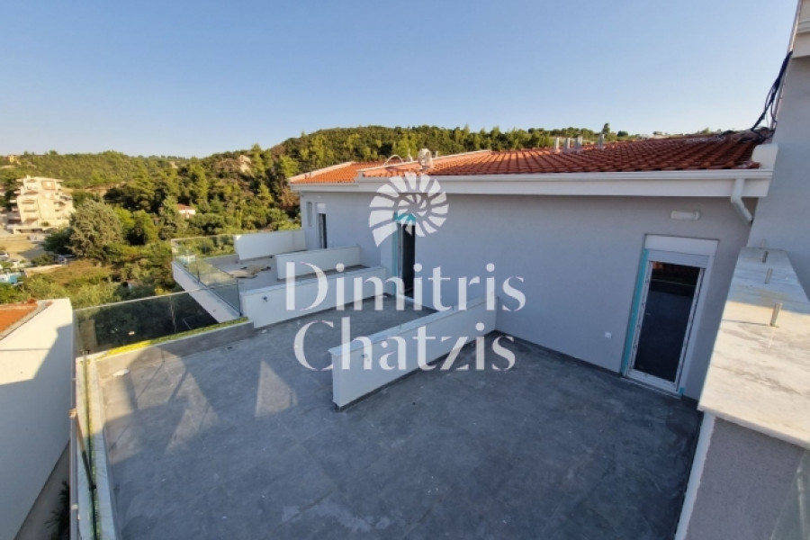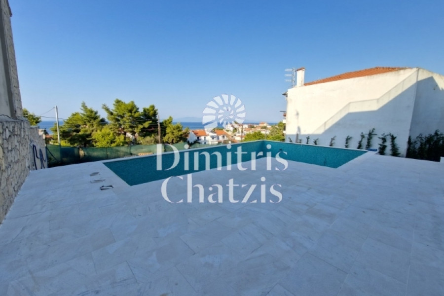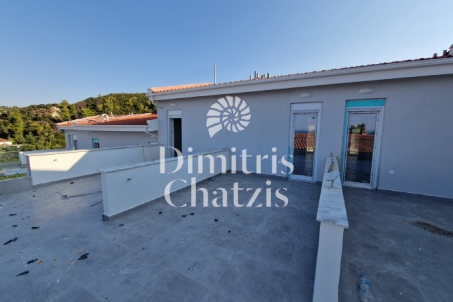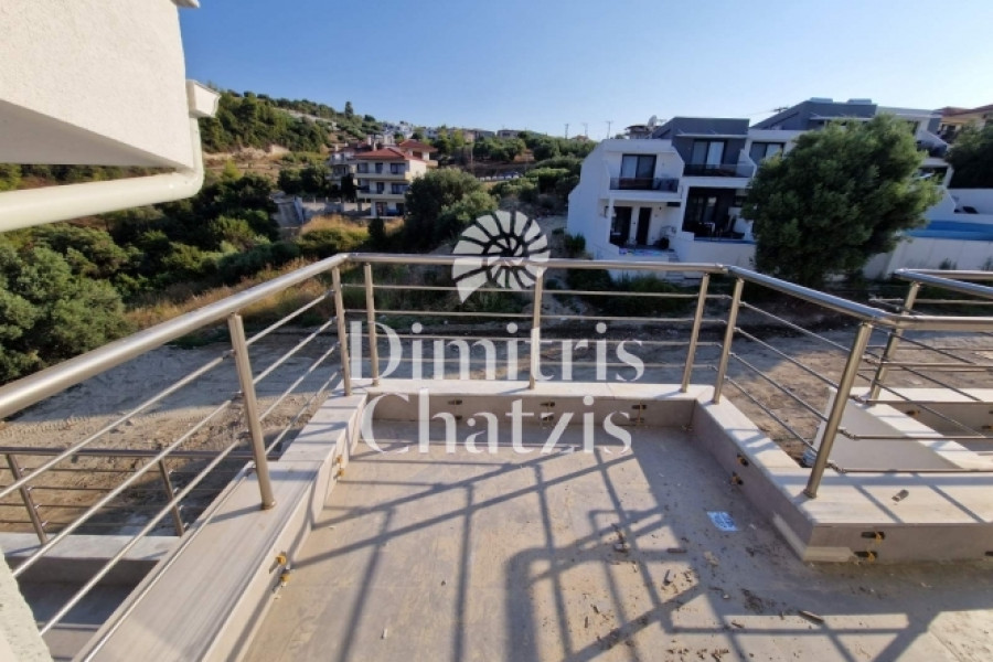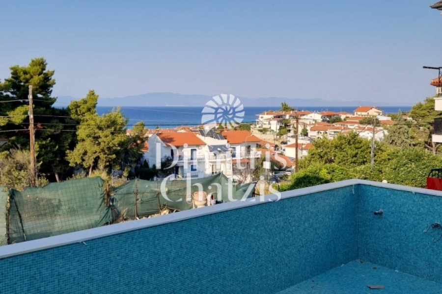 Property Code: 1960 - Maisonette FOR SALE in Pallini Polichrono for € 200.000 . This 68.00 sq. m. Maisonette is on the 1 st floor and features 2 Bedrooms, Livingroom, Kitchen, 2 bathrooms . The property also boasts Heating system: Air conditioner, tiled floor, view of the Sea, Window frames: Aluminum - Sliding, Armourplated door, garden, swimming pool, pre-installation for A/C, insect screens, double-glazed windows, solar-powered water heater, attic, open space, internal staircase, balconies: 40 sqm. The building was constructed in 2024 . Building Energy Rating: A Distance from sea 450 meters,