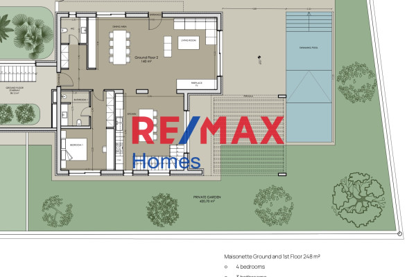 Immerse yourself in the epitome of luxury living at an exclusive Maisonette nestled in the heart of Glyfada. Designed for the discerning individual, our residences boast Energy Efficiency Class A+ ratings, Net Metering Solar and Photovoltaic Panel Systems, and Thermal Facade 12 cm Insulation for sustainability without compromise. This 248 sq.m. Maisonette, with 4 bedrooms (including 2 Master suites), 3 bathrooms, and 1 WC, offers spacious living, complemented by a private garden spanning 420 sq.m and a Private Swimming Pool.