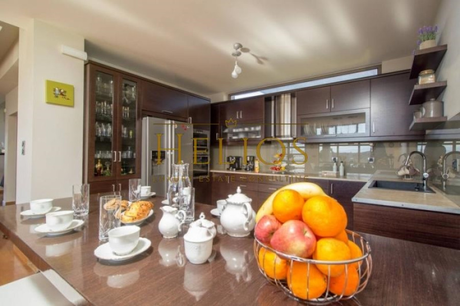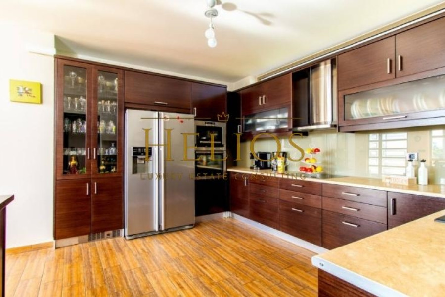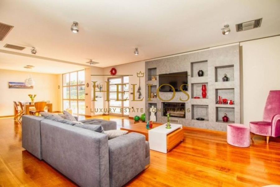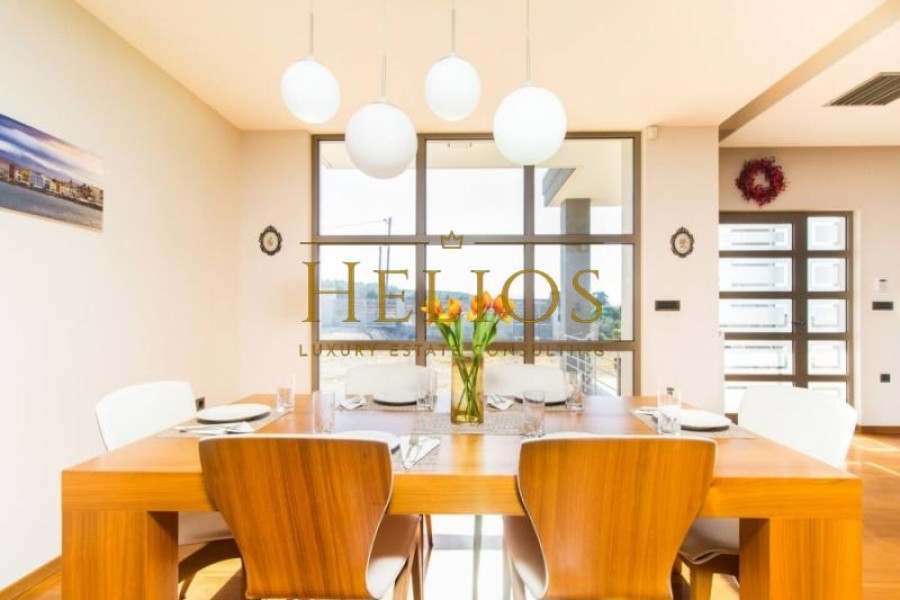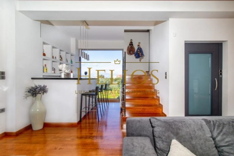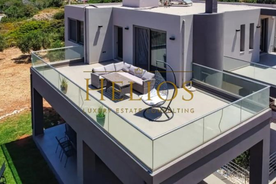 It is a luxury villa, fully furnished and equipped with unobstructed views of the sea and the surrounding area. The Villa consists of 3 bedrooms, 2 bathrooms, 2 living rooms, 2 kitchens, and 2 guest WCs. The characteristic of the villa is the magnificent view, as well from the interiors, comfort, and functionality. The levels communicate either through the elevator that starts from the underground garage or through the internal staircase. The outdoor area includes a lawn and there is the possibility of further configuration with the construction of a swimming pool, pergola, or even a barbecue. The villa has a central air conditioning unit, energy fireplace connected to the radiators, solar panel, and alarm system. The city of Chania is only 9 km from the villa, while the International Airport of Chania and the Port of Souda are 10 km and 13 km respectively.