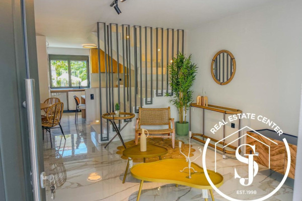 The stunning stone-built architecture blends beautifully with the facades and colors of the buildings and the surrounding neighborhood sweeping down to the Aegean sea. Just a stone's throw away from the coastline, the famous town of Pefkohori, this charming hideaway with its endless beauty, peace, and tranquility, is a guaranteed haven for a holiday home or a permanent residence with 145 sq meters. The home boasts 3 bedrooms, and 2 bathrooms, a living room, dream modern chef-style kitchen. To achieve spacious living and a relaxed and leisurely lifestyle, this home has been designed with beautiful large floor-to-ceiling windows in each room with a view, creating a stunning open, luxurious, and modern look. The kitchen flows into the living area which in turn opens onto the terrace and garden through large glass walls as if they were all a single space.