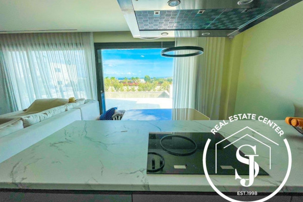 Inside, the home features 2 spacious bedrooms, 2 modern bathrooms, a designer kitchen, and a bright lounge with direct access to an expansive patio overlooking the sea.