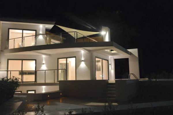 This luxury lifestyle boutique property is one of a kind & custom built-in the tourist area of Halkidiki. The villa sits on private land of 2,000 meters including a water well, and a private swimming pool with dimensions of 11 x 4.40. water plumb, plenty of olive trees, manicured garden, an outdoor shower, parking for two vehicles, heating panels for energy saving, plus a security system around the land. The stunning modern architecture used in the home offers internet wi-fi, a complex security system, central air conditioning throughout, a 20-meter storage room, balcony 200 meters wrap around with a pergola, four bedrooms, three full baths, a gourmet kitchen for every chef’s delight, lounge with walkout to the wrap-around balcony. This villa offers the most amazing panoramic view of the sea and olive groves and is a dream with natural beauty.
