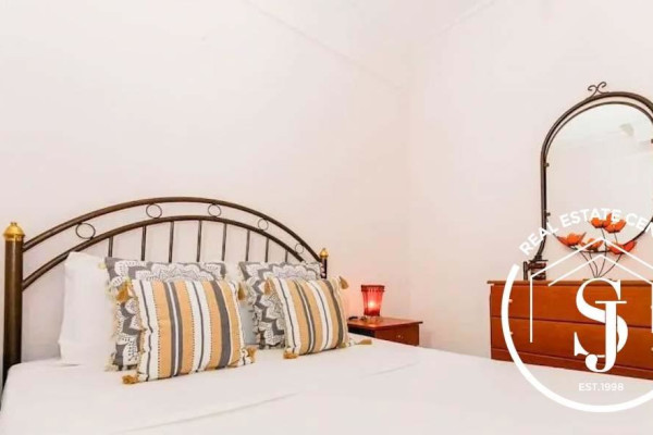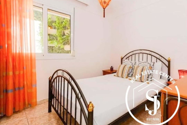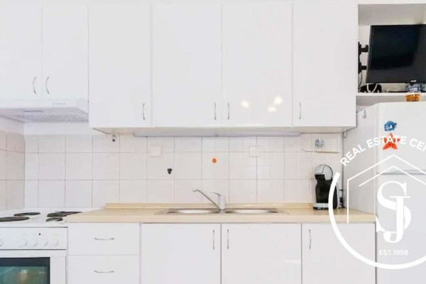 The apartment has windows in the bedroom instead of a patio door, which makes it more child-friendly, while for the whole family there is a spacious balcony in the living room with an awning for sun protection and privacy. The apartment is kept in excellent condition and has inverter air conditioning, boiler heating system for winter use, all furniture and modern appliances to a high standard, including floor to ceiling wardrobes in bedrooms and hallway, aluminum windows and doors with insect screens and blinds.
