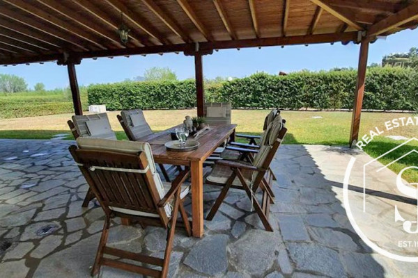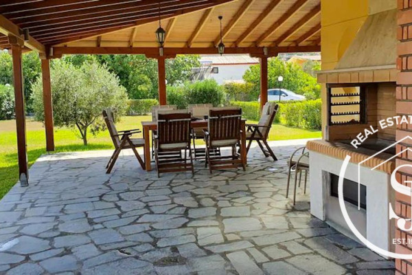 Holiday living in this beautiful country setting in Skala Fourka Kassandra built in 2006. The home boasts 90 sq meters of living area on 2 levels (No basement living). Included in the floor plan are 3 bedrooms, 2 bathrooms, a chef-style kitchen, and an open-concept lounge with a walk-out to the super-large patio. The garden of 850 m offers plenty of potential for plenty of landscaping and activities. The owners offer many extras such as aluminum window fittings, security doors, a fireplace, fly screens, A/C inverters, mountain views, 2 parking spaces, furniture, electricals, an outdoor shower, a storage room, and much more. The sandy beach is only 600 m from the home and the center of town is just a stroll for all amenities. To view this gorgeous home call us today!!