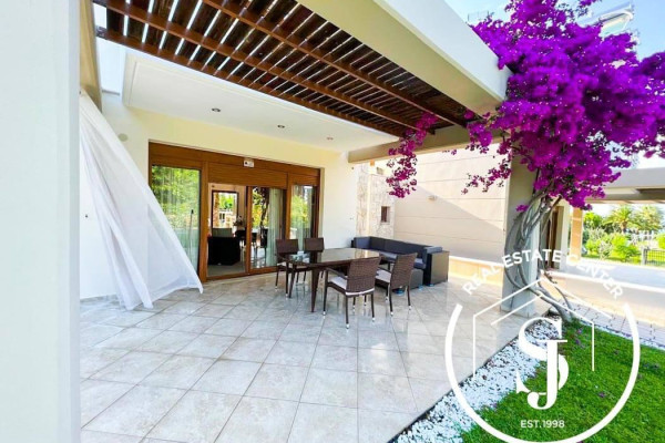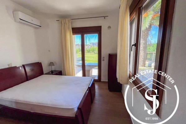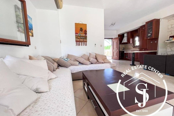 This beautifully maintained villa offers 120 sq.m. of elegant living space across two levels, just steps from the tranquil shores of the sea. Set within a gated property, the home features:
