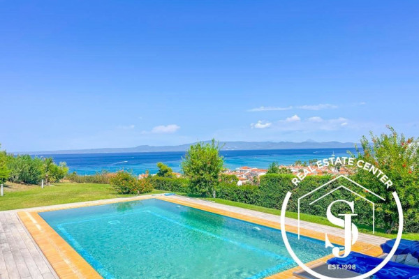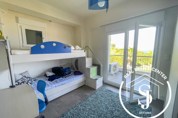 Experience the ultimate holiday lifestyle with this stunning villa in a serene location, offering breathtaking panoramic sea views. Boasting 150 m² of elegant living space, the home features 5 spacious bedrooms, 2 full bathrooms, a designer kitchen, and a bright open-plan living area.