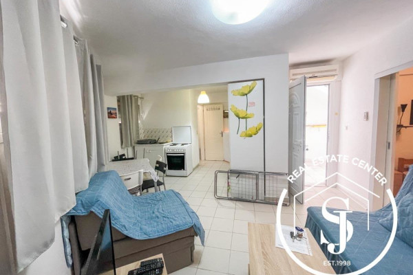 This bright and inviting semi-basement apartment is ideally located near the old square, putting you in the center of all the action. Boasting 47 sq.m of living space, the home features 2 bedrooms, a full bathroom, a fully equipped kitchen, and a spacious living area with plenty of natural light.