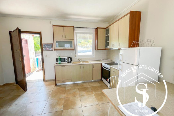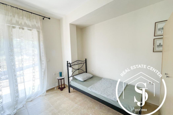 The beautifully landscaped garden spans 500 sq.m. and features a private swimming pool—ideal for summer relaxation. Just 900 meters from the sandy beach and a short drive to the lively town of Pefkohori, this property is well-positioned for both personal enjoyment and rental income.