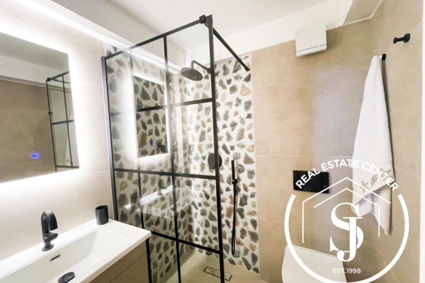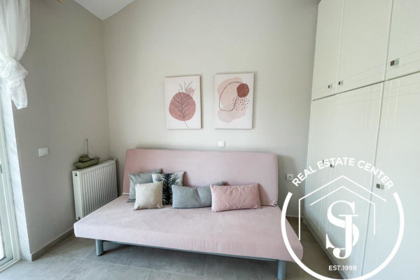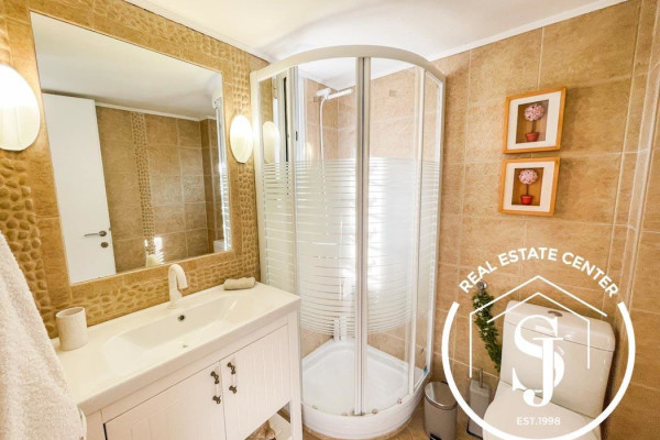 This fully furnished and equipped gem in the thriving town of Pefkohori offers 120 m² of elegant living space, thoughtfully renovated and refurnished in 1992 to the highest standards.
