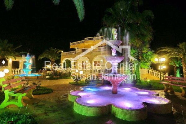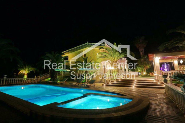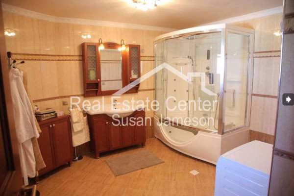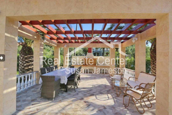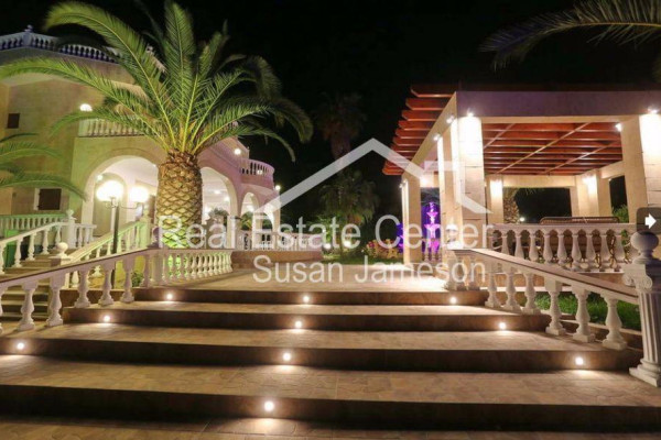 This timeless villa spans 750 m² of luxurious living space, offering four bedrooms, eight bathrooms with Jacuzzis, two formal living rooms, and two chef-style traditional kitchens.