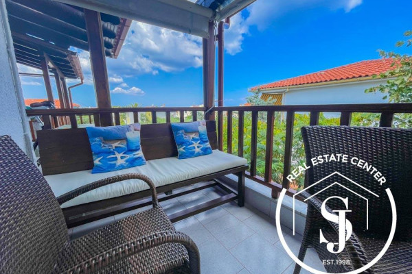 Discover this charming two bedroom penthouse apartment in the lively seaside village of Pefkohori, just 60 meters from the wide sandy beach. With a total area of 51 sq.m., the property includes: 2 comfortable bedrooms A full bathroom Single kitchen with living room and warm fireplace Enjoy outdoor living on the large L-shaped corner terrace, perfect for al fresco dining and relaxing moments. Additional Features: Fully furnished with electrical appliances Awnings & inverter air conditioning Private parking Excellent corner placement It is located at the entrance of the village, in a privileged location that combines comfort, convenience and seaside living. 📞 Contact us today to schedule a visit.