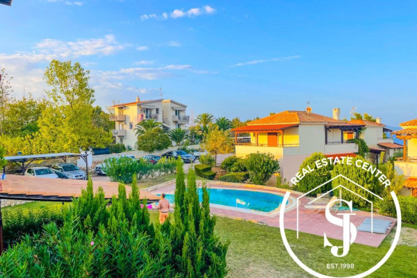 Nestled just 70 meters from a stunning wide sandy beach with turquoise waters, this delightful two-level home offers 98 sq.m. of comfortable living space and was built in 2006.