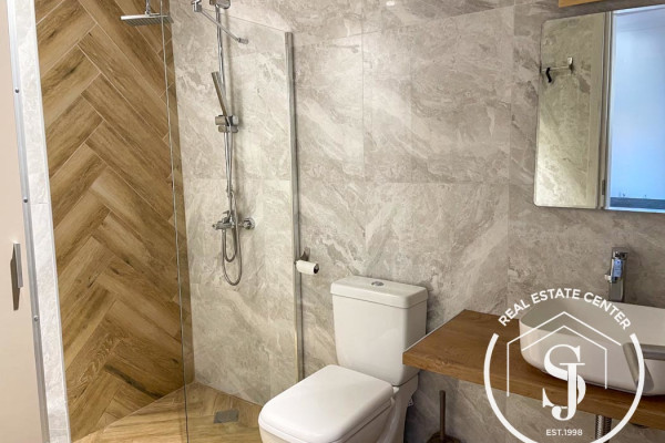 Located just 450 meters from the lovely sandy beach and within walking distance of shops, taverns and other amenities, it combines style, comfort and a prime seaside location.
