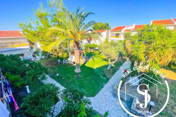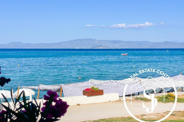 Discover this charming holiday home of 85 + 85 sq.m. perfectly situated right on the sandy beach in the vibrant seaside town of Hanioti, Halkidiki.
