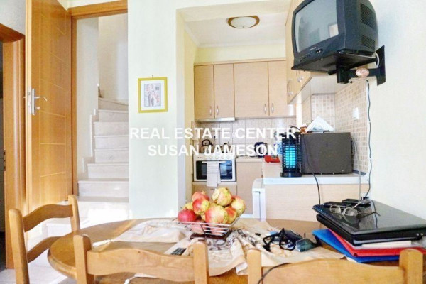 Unique maisonette in the picturesque town of Paliochorio with a separate apartment for guests or ideal for rental income. Built in 2005 and in excellent condition, with a total area of 123 sq.m. in 3 levels. The maisonette has two bedrooms, two bathrooms, a kitchen with an open living room and direct access to the terrace with an unlimited panoramic view of the sea.