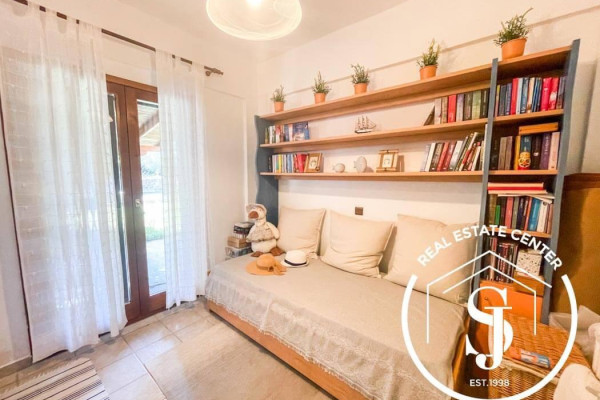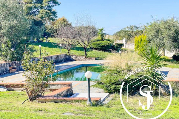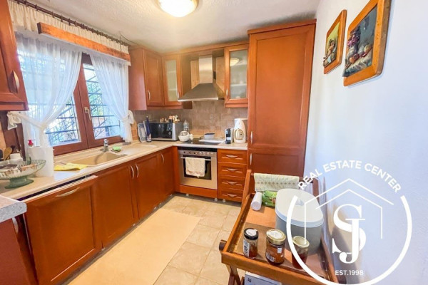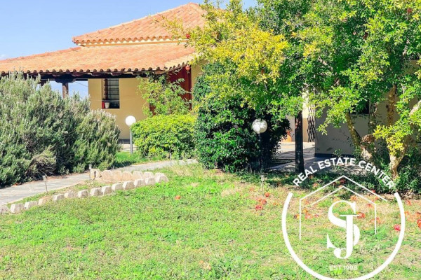 Located just 4 km from the finest sandy beaches and close to all local amenities, this residence offers both comfort and convenience. Built in 2000, the villa is in pristine condition, showcasing a rustic architectural style with a fireplace, heating system, and air conditioning.