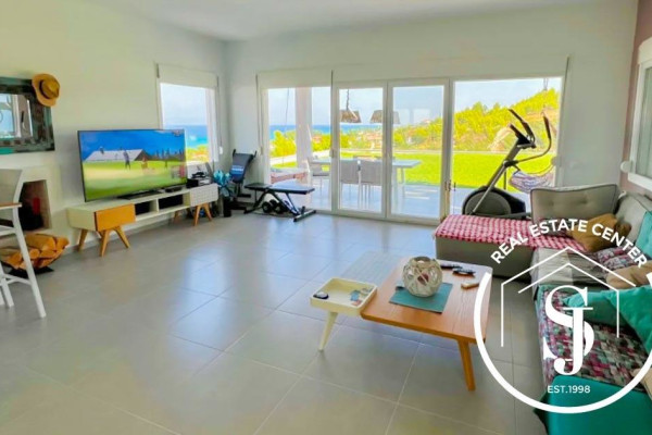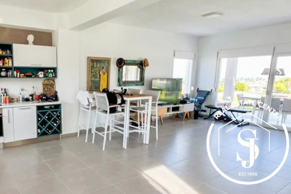 A designer kitchen seamlessly connected to a bright lounge with direct access to a sea-view patio