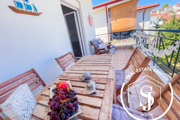Discover this charming penthouse apartment in the lively seaside settlement of Polychronos, Halkidiki, offering 50 sq.m. comfortable living space. The thoughtfully designed layout includes two bedrooms, a full bathroom, a contemporary kitchen, and a bright living room that opens directly onto a spacious veranda—perfect for enjoying outdoor living.