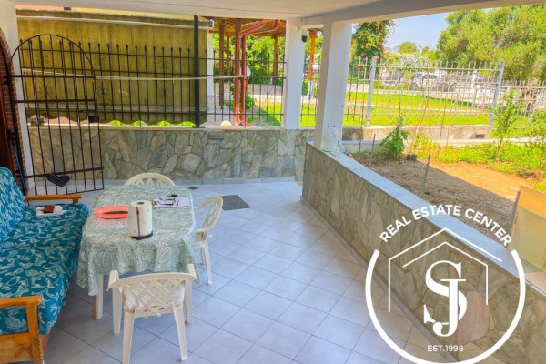 Located just 400 meters from the sandy turquoise shores, this charming detached home sits on a private gated plot of 600 sq.m., offering both privacy and convenience. The main residence boasts 95 sq.m. of living space, featuring a well-designed floor plan with 3 bedrooms, 2 bathrooms, a fully equipped kitchen, and a cozy living area that opens to a spacious alfresco patio, ideal for outdoor dining and entertaining.