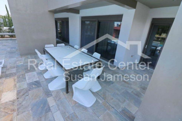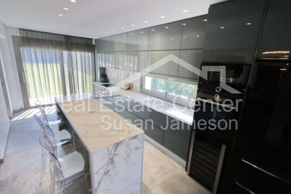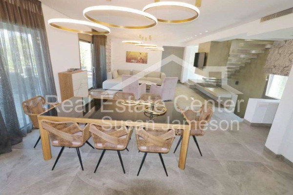 It is located in the popular and lively city of CHANIOTI, very close to the sea, within walking distance. In the popular city, surrounded by cafes, award-winning restaurants, boutiques and parks, this residence built in 2017 offers luxury living at its best. Over three levels, the residence offers 355 square meters of living space, comprising 3 bedrooms, plus 1 master bedroom with its own bathroom and mini bar, first class chef's kitchen, and formal dining room for 8, formal lounge, games room with billiards, storage and more. Many upgrades and extra features such as elevator, security doors, security system, private German heating system, sauna, jacuzzi, kitchen is fully equipped, all furniture and appliances, automatic central air conditioning unit, home cinema TV, boiler, private studio for guests, outdoor BBQ, heated pool, outdoor shower, dining room for 10 people, automatic watering system, private borehole for watering the garden, generator, special window coverings to protect against noise, electric shutters, screens, parking for 5 vehicles and much more. The fenced and well maintained gardens are 2000 square meters and offer plenty of privacy and the potential for many additional functions. To view this stunning villa, please call or email us for an appointment...