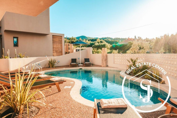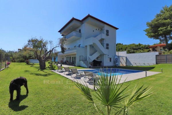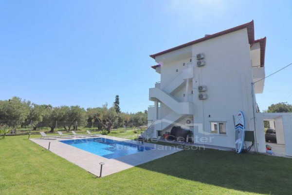 Investment property for sale in a great location in the thriving area of Halkidiki Kassandra between Hanioti & Polihrono. The rental building offers an oasis of gated gardens of 1,390 sq meters full of mature trees and a swimming pool 85 X 5.5 meters, BBQ for the guests. Built and renovated in 2019 the apartments are of various sizes including 2 large ones each of 75 sq meters on the ground level and the others are about 34 sq meters. The beauty of the apartments is the prime location and the panoramic sea views. Many extras with the sale of these pristine apartments are the solar panels, outdoor shower, A/C inverters, fully furnished tastefully, all the electrical, ready turn-key, ready income return, and much more……..To view this investment call for your appointment today.