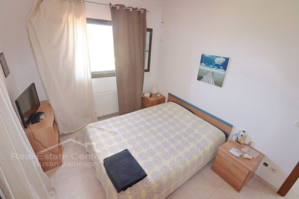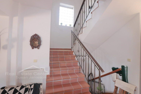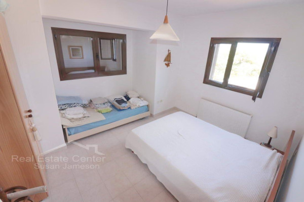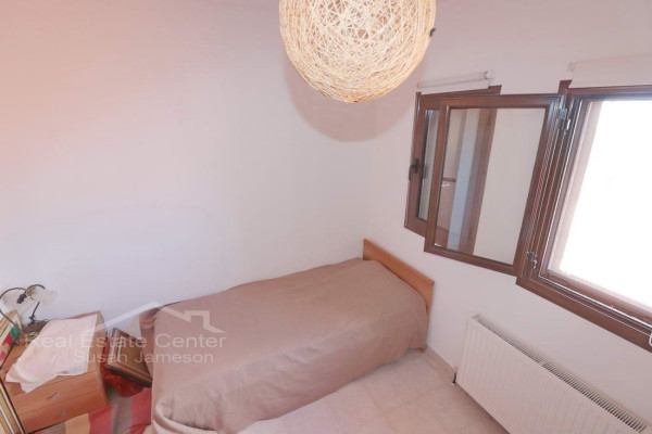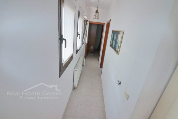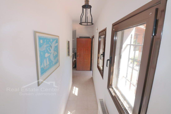 Ceramic tiles in neutral tones in the living areas, decorative details and plaster moldings add character. Bright and spacious rooms offer a truly comfortable summer destination.